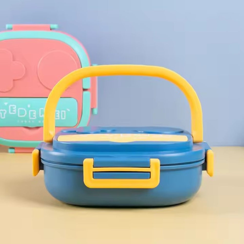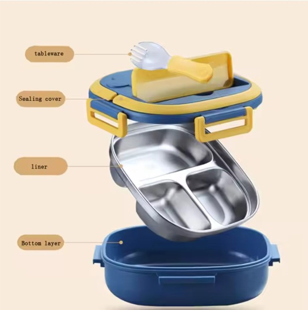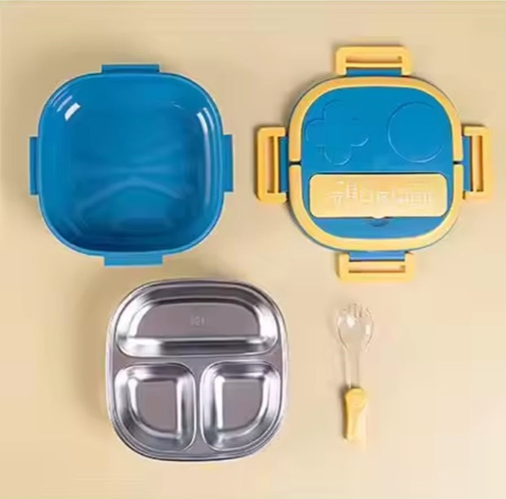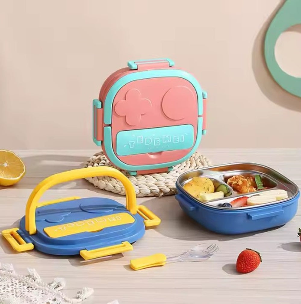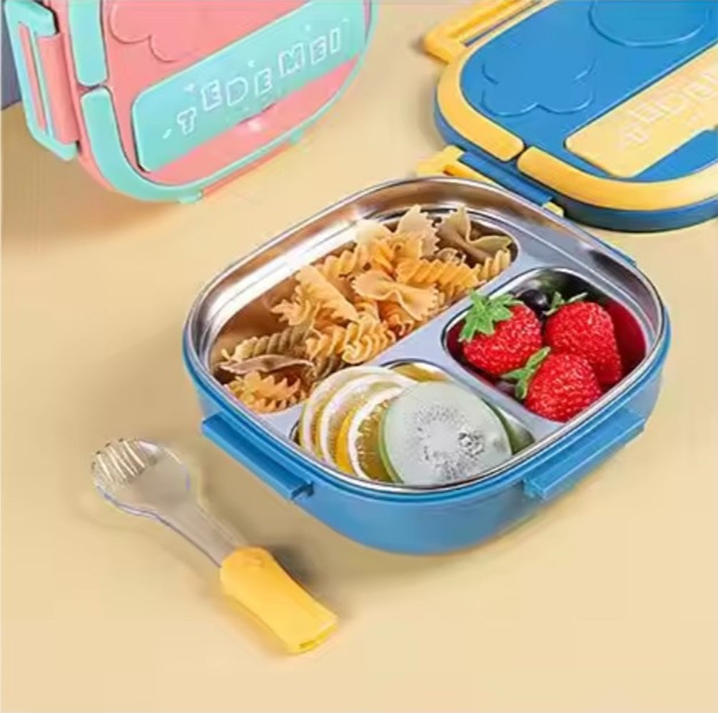 CuddleNest Bento Lunch Box for Kids – Stainless Steel 3-Compartment Lunch Set with Spoon & Fork | Colorful, Leakproof, BPA-Free, Dishwasher Safe | Ideal Tiffin for School Children