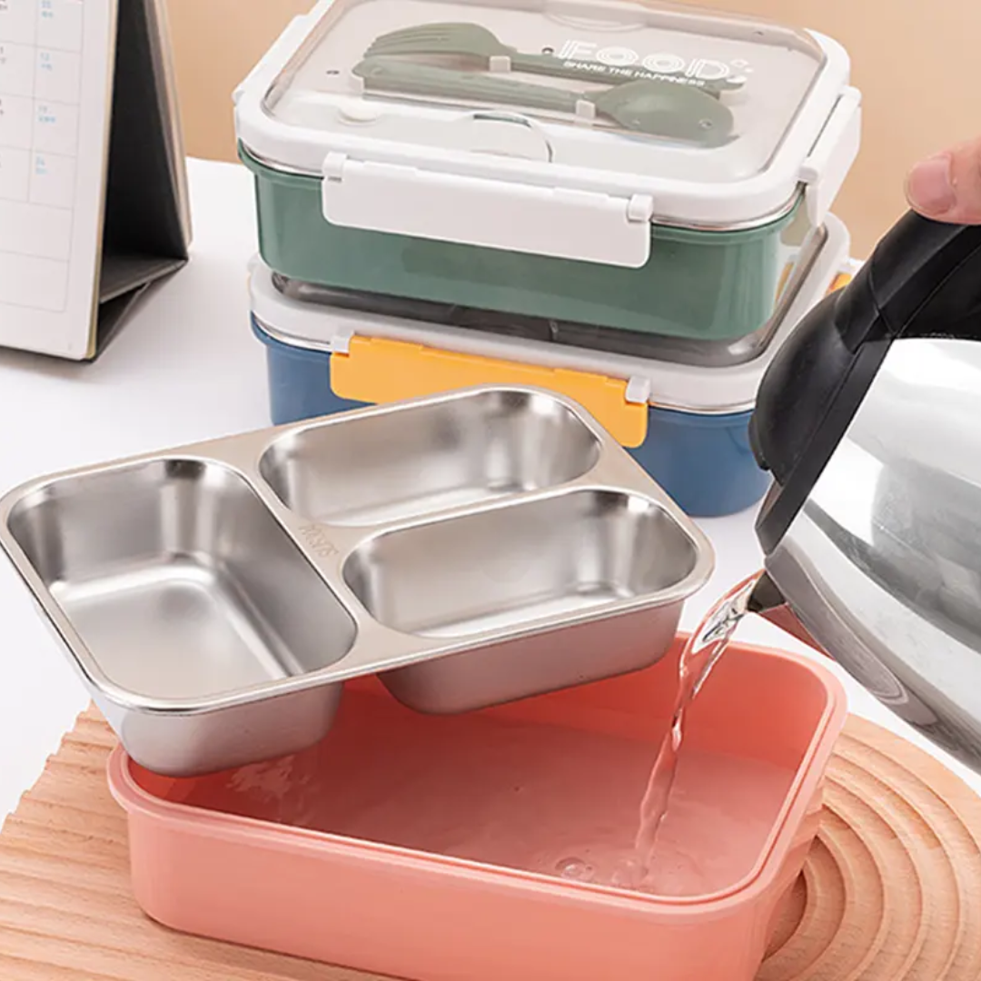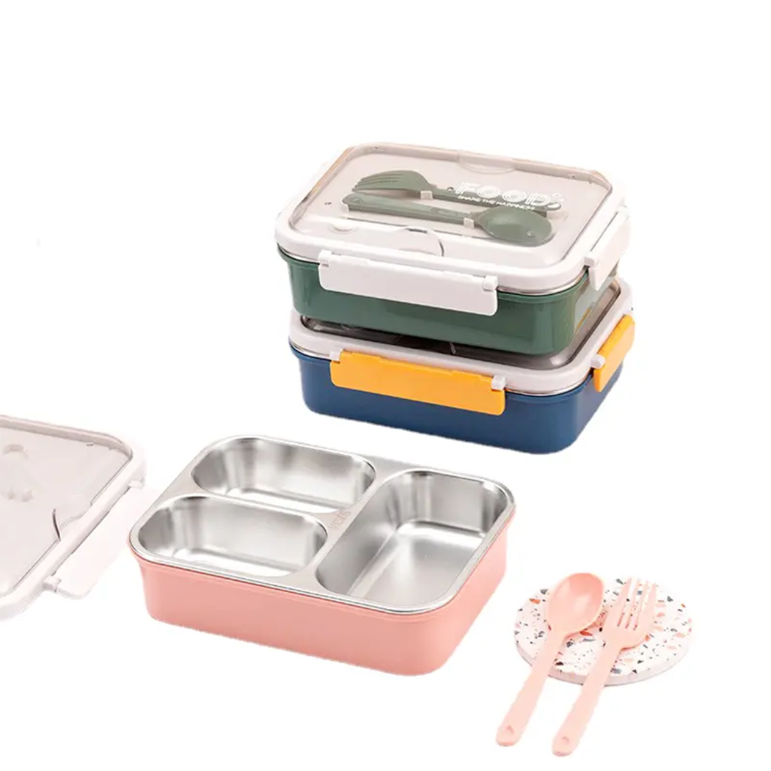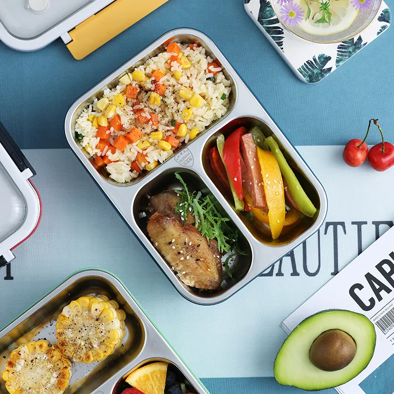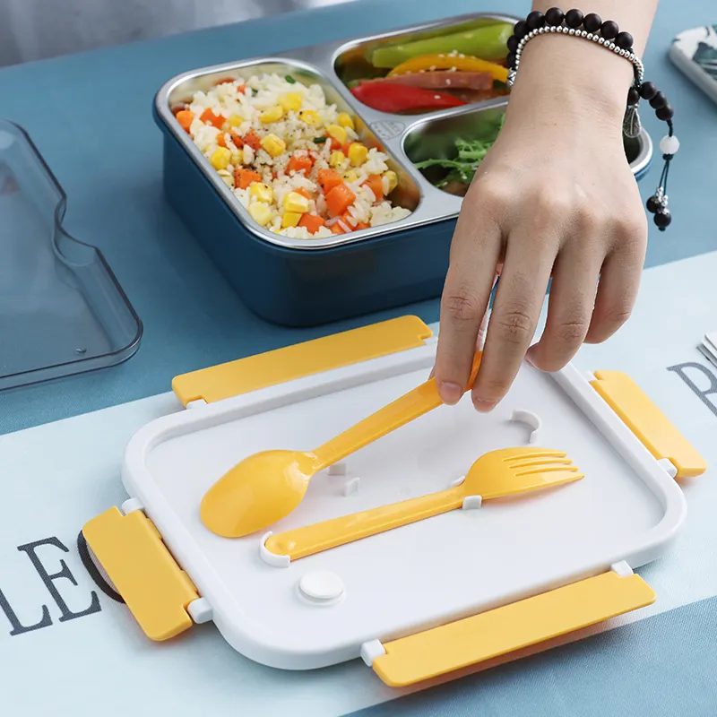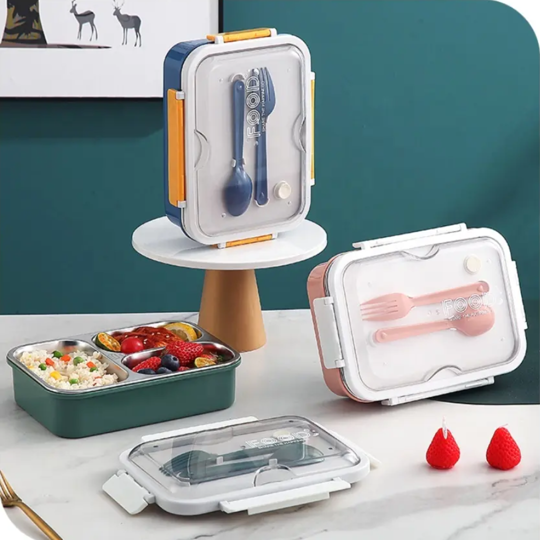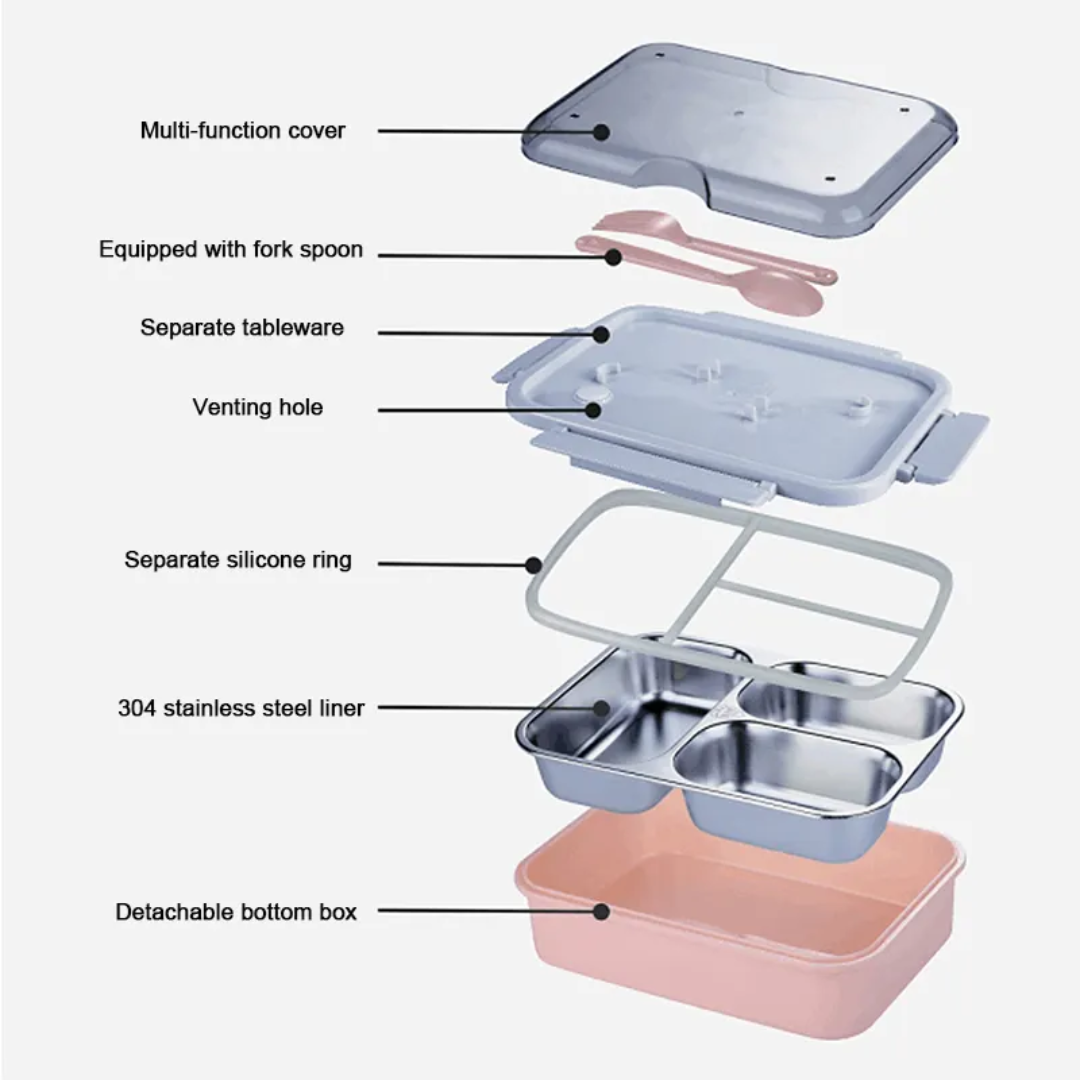 Convenience on the Go with Our 3-Compartment Bento Lunch Box with Breathable Button Design