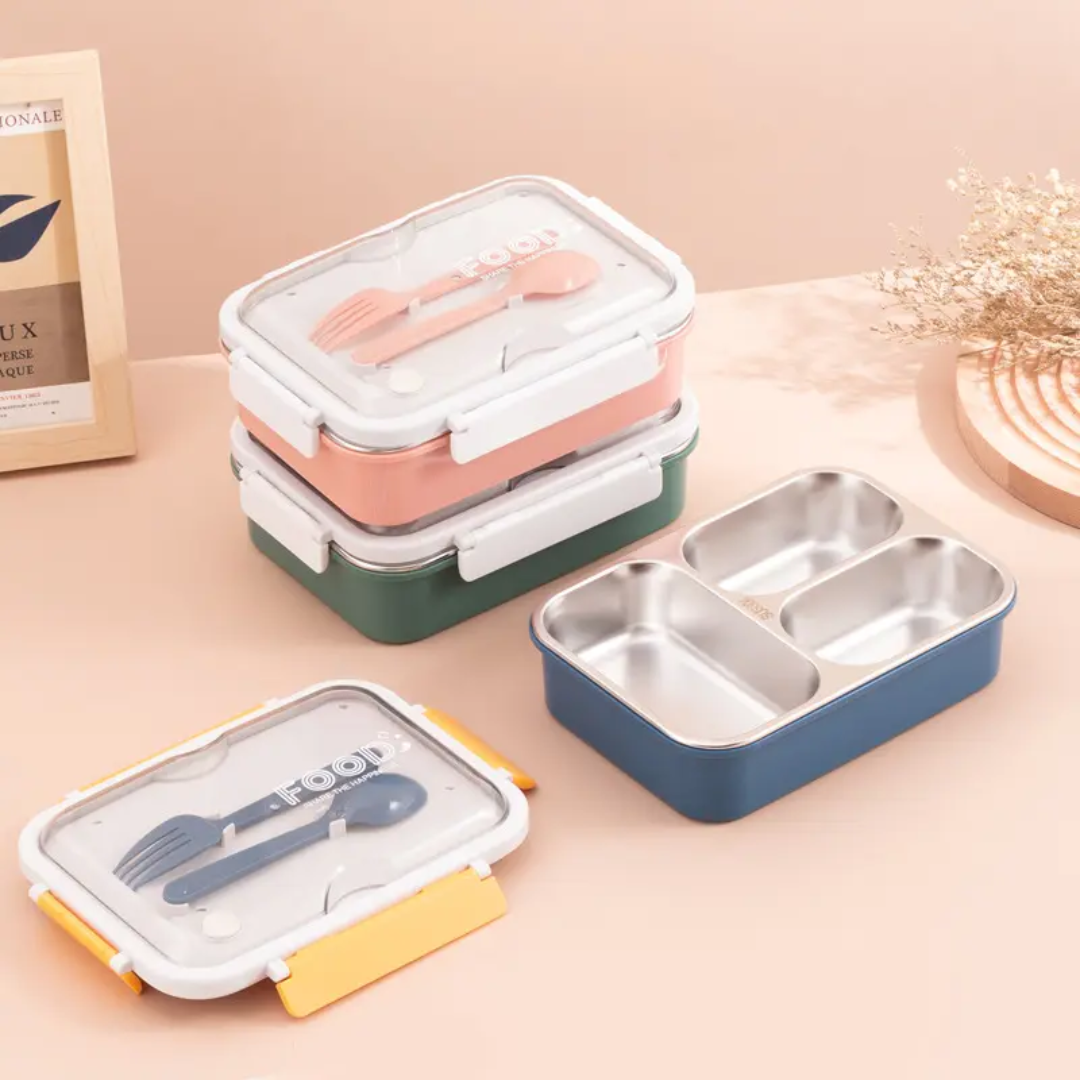 On the Go with Our 3-Compartment Bento Lunch Box with Breathable Button Design