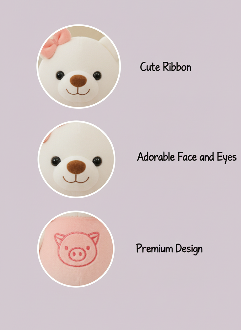 • PREMIUM DESIGN: Adorable white teddy bear wearing a pink outfit with cute pig design, featuring soft plush material and detailed embroidery for lasting quality